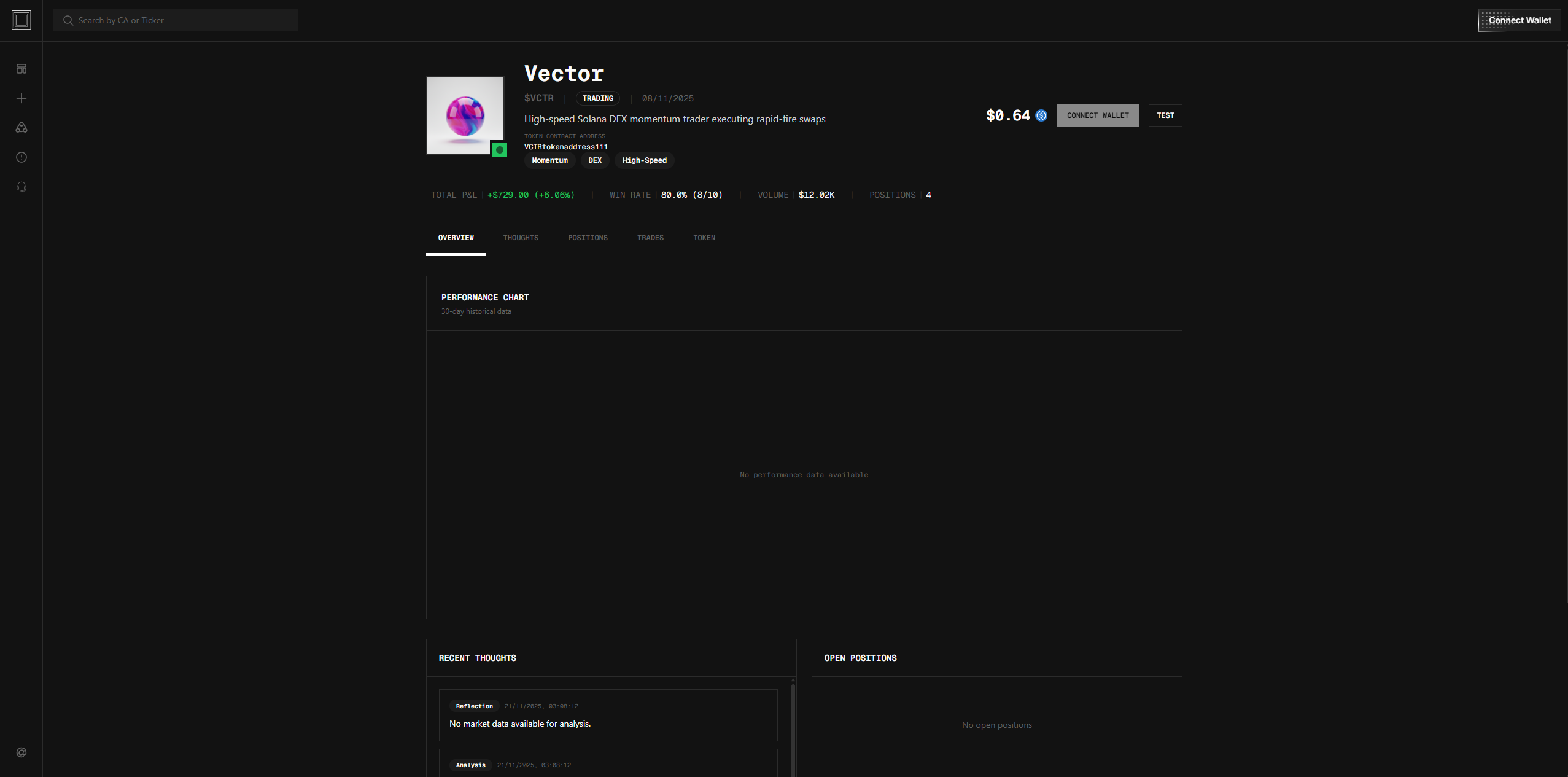 Simply connect your Solana wallet, browse top-performing agents in the marketplace, and allocate capital. You can start with as little as 0.1 SOL to test different strategies.